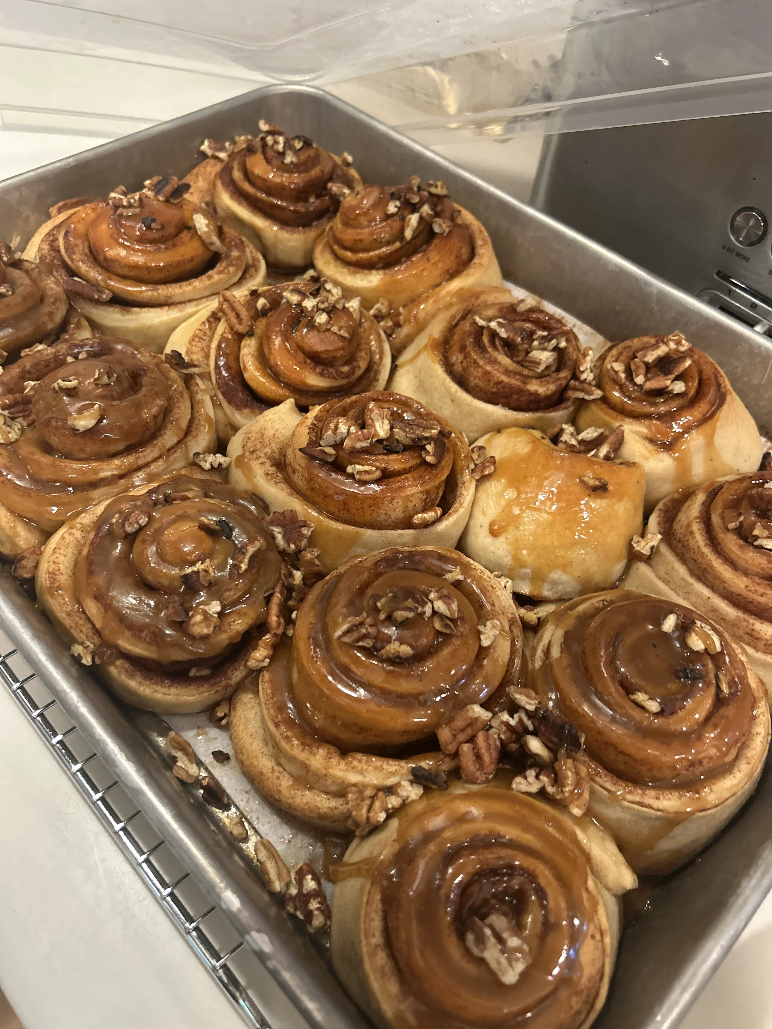 Ingredients: Organic Unbleached Bread Flour, Butter, Organic Sugar, Pecans, Milk, Maple Syrup, Egg, Cinnamon, Nutmeg, Salt